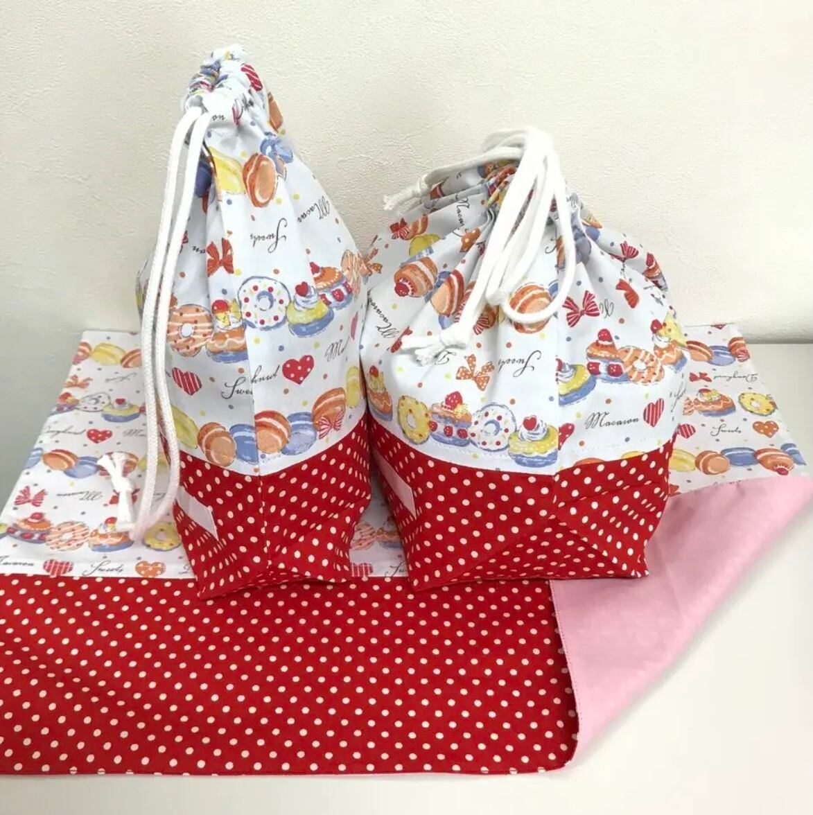 ランチョンマット、コップ袋とお弁当袋3点セットになります!
